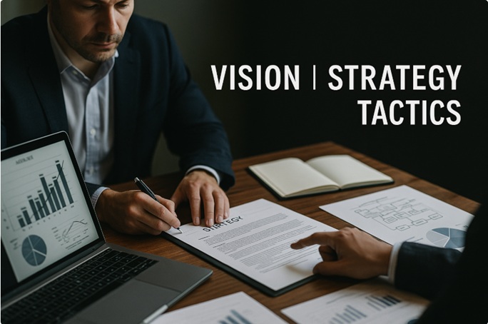 目的(Vision)と戦略(Strategy)がないまま動いてしまうと、成果は一時的になり、方向性の一貫性が失われる。